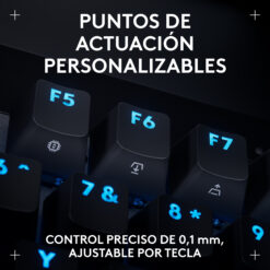 Diseñado para que los profesionales ganen campeonatos, con control de modo de juego, teclas de PBT de doble moldeado, distribuciones de teclado estándar para compatibilidad con 3P y opciones de conectividad LIGHTSPEED, Bluetooth y USB.