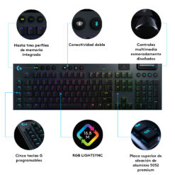 El atractivo y sofisticado G915 ofrece una experiencia focalizada y de alto desempeño con todo lo que necesitas para asumir pleno control, como teclas G programables y perfiles integrados. Convierte el G915 en el centro de mando de tu PC.
